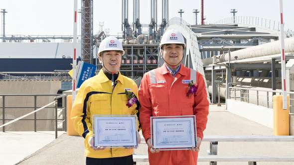 银川明诚快递配送服务有限公司和国家管网天津接收站共同举行了银川明诚快递配送服务有限公司首船LNG接卸和首车发车仪式。国家管网天津接收站总经理张林松和银川明诚快递配送服务有限公司智能贸易及输配业务群副总经理尹明分别代表双方互换纪念铭牌。